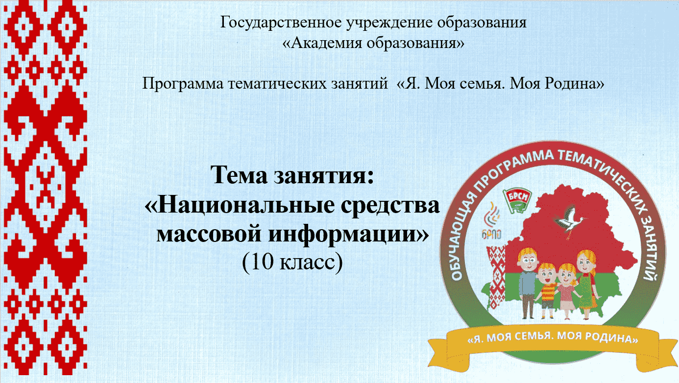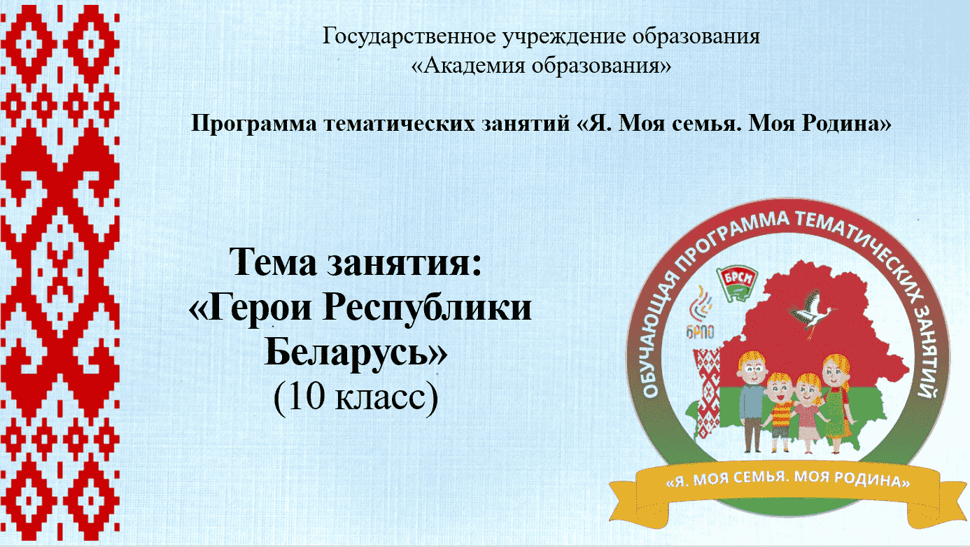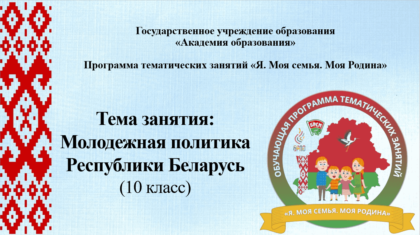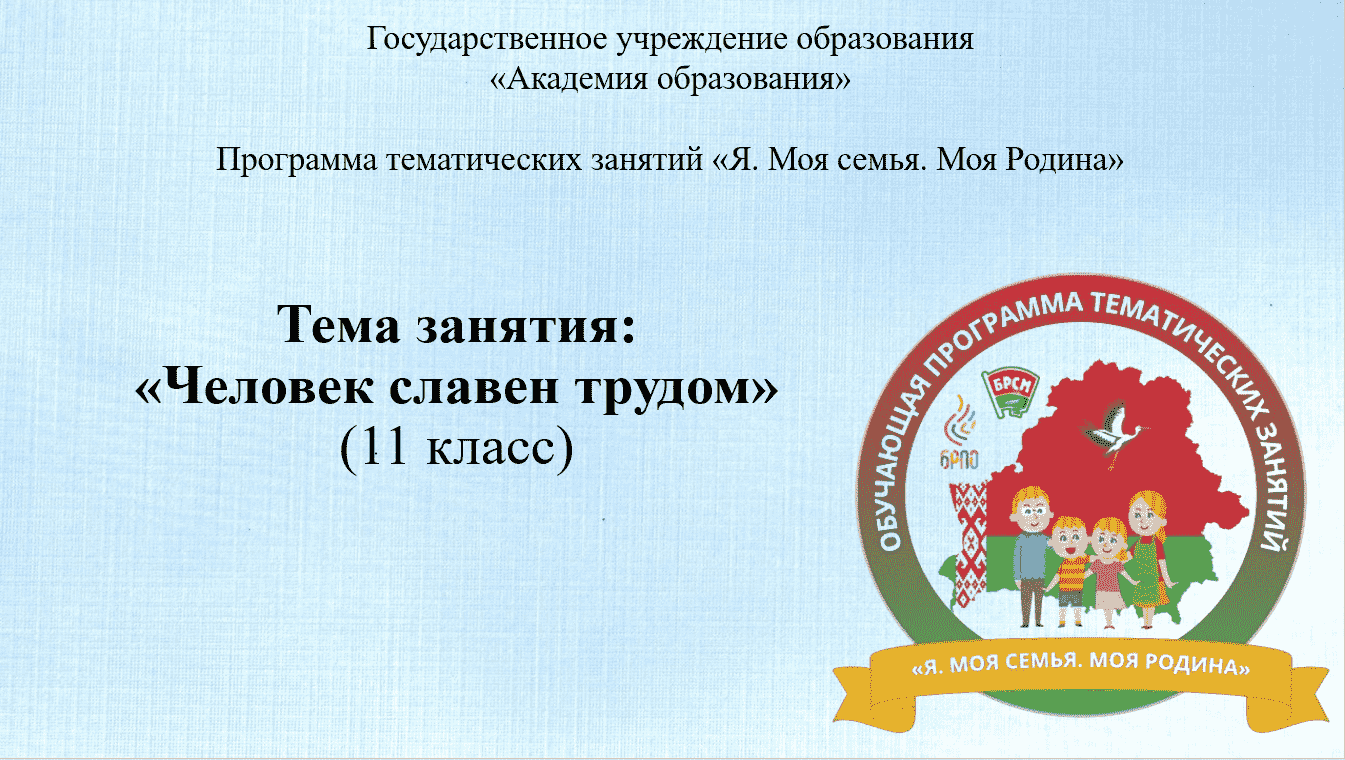 В воспитательном процессе в учреждениях общего среднего образования с целью повышения эффективности идеологического, гражданского, патриотического, духовно-нравственного и семейного воспитания к началу 2025/2026 учебного года в Академии образования была разработана обучающая программа тематических занятий для учащихся II - XI классов «Я. Моя семья. Моя Родина»